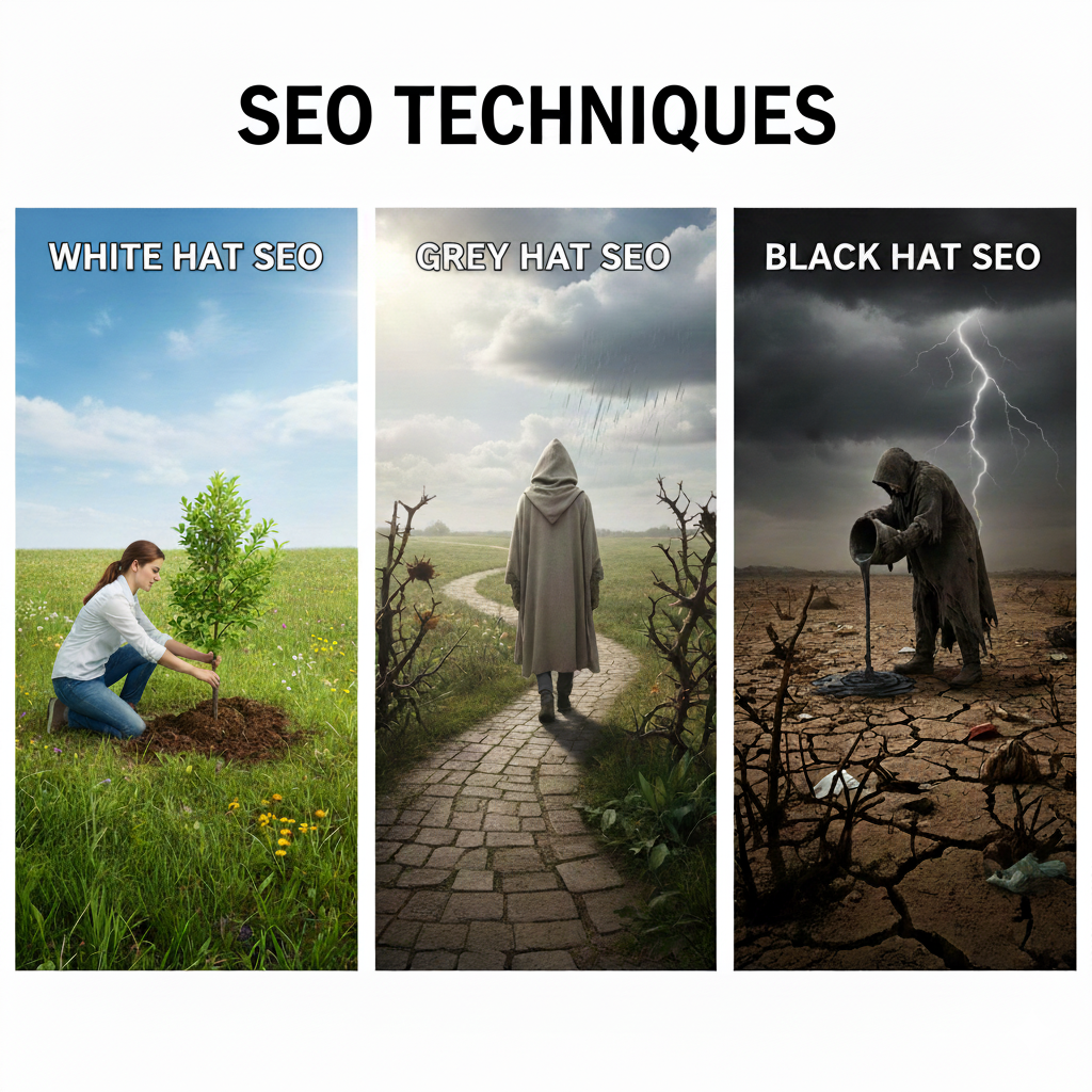 Black Hat SEO uses illegal or manipulative techniques to get quick rankings.